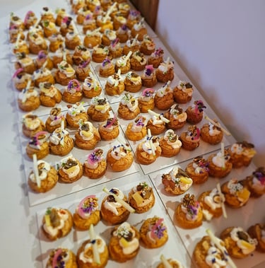 Choux sucrés ou salés, chouquettes, pavlovas, tartelettes, mini cookies, flower cakes ou mini oursons :