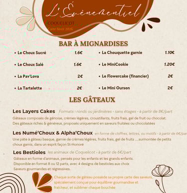 Tarifs et compositions à retrouver sur la carte événementielle, en bas de cette page.